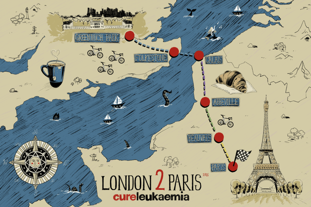 2025 – London to Paris t-shirt design for Cure Leukaemia